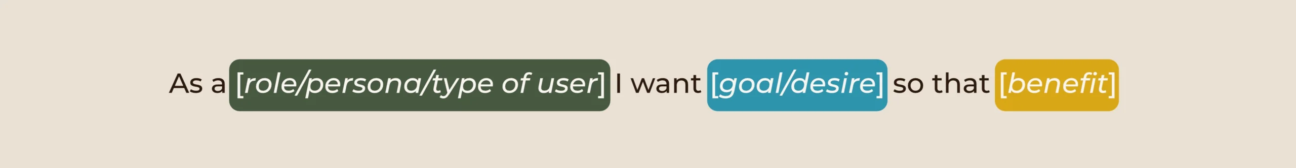 "As a [role/persona/type of user], I want [goal/desire], so that [benefit]."
